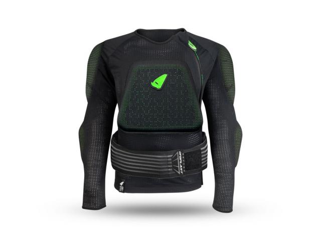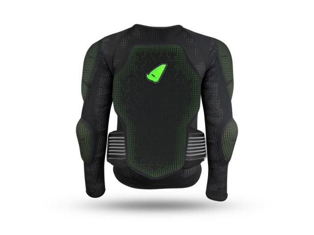 Corpetto a manica lunga dotato di protezioni petto, schiena, gomiti e spalle, realizzato con tessuto elasticizzato traforato dalle straordinarie caratteristiche tecniche ed estetiche. Offre elevate prestazioni in termini di riduzione dei danni da impatto risultando parte ideale del perfetto equipaggiamento per l'Off Road.