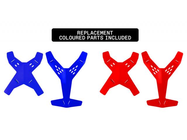 • Incluse parti di ricambio anteriore e posteriore in colore blu e rosse